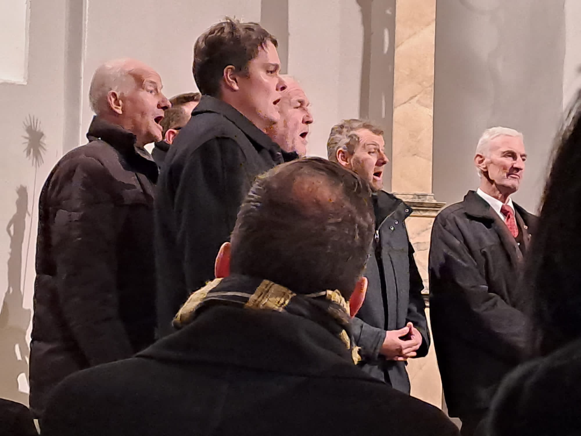 Draußen wütete der durchaus warme Wind während wir drinnen gemeinsam mit den Bläsern, dem Gitarrentrio und den Harmonikaduo die dargebotenen Texte begleiteten.