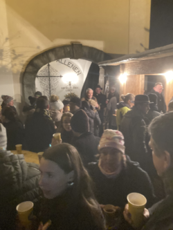 Die Stimmung nach dem Konzert war dank des Schneefalls am Nachmittag so, dass kaum jemand so einfach an dem Glühmost, Glühwein, Punsch oder den Maroni vorbeigehen konnte, ohne zuzuschlagen.